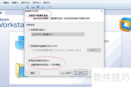 3、 出现安装客户机操作系统窗口,选择稍后安装操作系统,然后单击下一步继续操作。