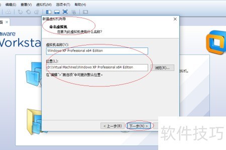 5、 弹出命名虚拟机对话框,在虚拟机名称栏输入名称,点击位置旁的浏览按钮,选择虚拟机的安装路径。