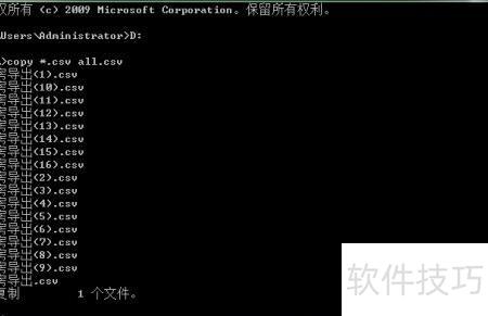 3、 请用英文输入法输入合并命令:copy *.CSV all.csv