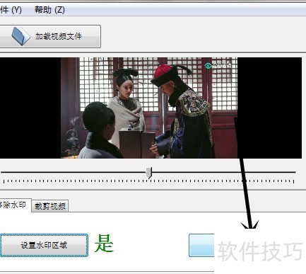 3、 加载视频后,拖动进度条,选择要去除水印的画面区域。