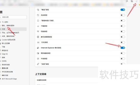 6、 在外观设置中启用Internet Explorer模式开关,打开网页后点击相应图标即可进入IE兼容浏览页面。