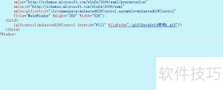 10、 将动态GIF控件的填充方式设为拉伸,并指定其文件路径为.gifDataGrid使用1.gif,实现动画在指定区域内的完整填充显示效果。