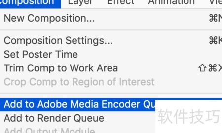 4、 启动AE后,进入合成菜单,选择添加至Adobe Media Encoder CC即可。