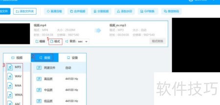 2、 选择音频格式,点击开始转换,即可导出所需音频文件。