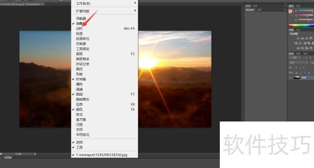 2、 打开PS,导入一张待处理图片,点击顶部菜单栏的窗口,选择动作功能。