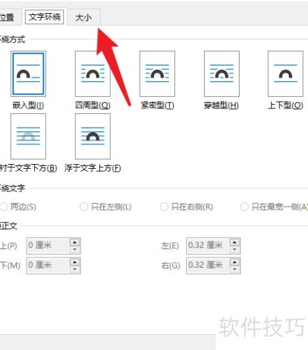 4、 点击界面中的尺寸选项。