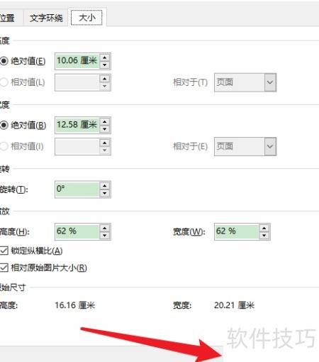 右键图片选择大小和位置,设定尺寸后确认,利用F4键快速批量调整多张图片尺寸。