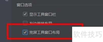 5、 点击勾选即可启用宽屏工具窗口及其属性功能。