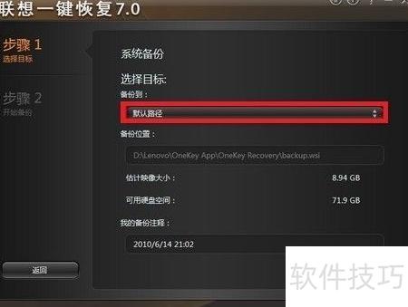 2、 随后将显示备份设置界面,若无需更改则保持默认路径即可。