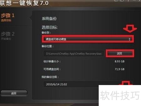 4、 如需更改备份路径,点击上下箭头,选择硬盘或移动硬盘,然后点击下一步。