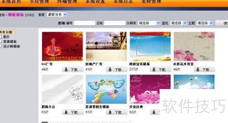 9、 提供丰富的在线模板资源,涵盖背景、通用、FLASH及设计师专属等多种类型,无需专业美工即可轻松打造高品质节目。用户可通过分类、名称、分辨率、色彩、主题等条件快速检索所需模板,并支持一键下载即时应用,操作便捷高效。