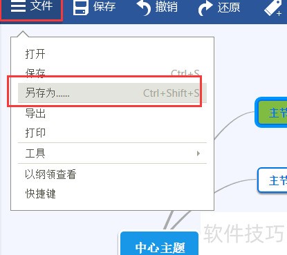 5、 点击软件左上角文件菜单中的另存为选项。