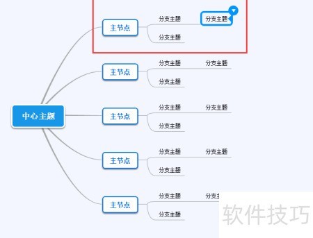 3、 创建模板后,即可着手绘制思维导图。