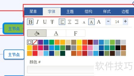 4、 绘制模板后,点击节点旁的三角按钮,可调整文字大小、颜色等属性。
