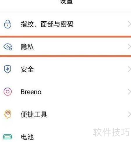 1、 进入手机设置,选择隐私选项。