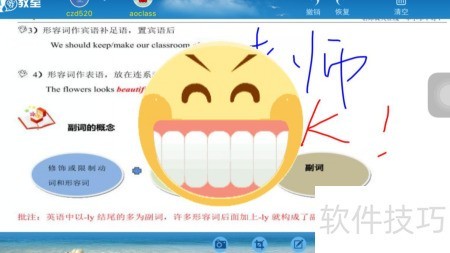 4、 进入教室后,双方可实时语音交流,还能写字、发表情,一起讨论作业。