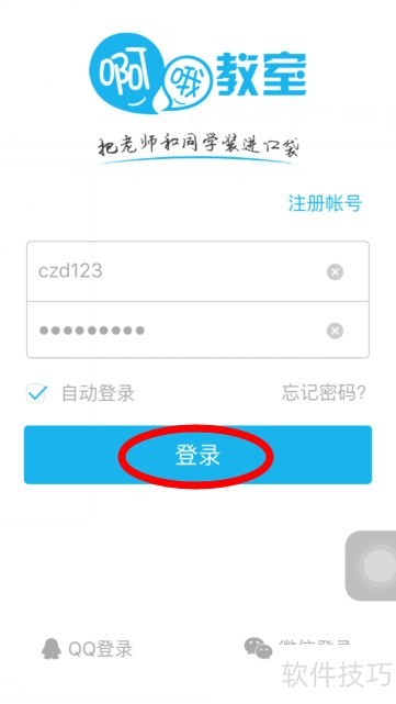 1、 请先下载啊教室应用,安装后打开并登录。若尚未注册,请先完成账号注册,随后即可正常使用。