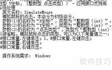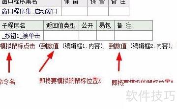 9、 由于编辑框1和2中的内容为文本格式,而参数1和2需要数值类型,因此必须通过到数值函数将文本强制转换为数字。参数3可自行选择,取值范围包括:0对应左键单击,1对应左键双击,2对应右键单击,3对应右键双击,分别与接口常量中的定义相匹配。