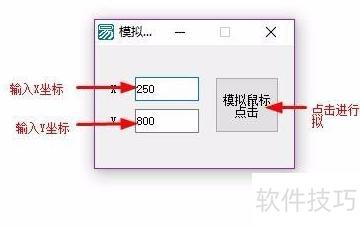 10、 输入需点击的坐标,按下模拟鼠标点击按钮,鼠标将自动移至指定位置并执行一次左键单击。