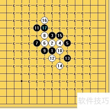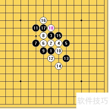 2、 此时黑棋的关键连接点为G12,占据该点可贯通左右两翼,因此白方第16手抢先落子于此,既能封锁黑棋通路,又能形成眠三之势,实为有力一手。另一可选点H11虽能削弱黑棋右侧进攻,但会使黑在左侧局部优势更为明显。