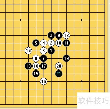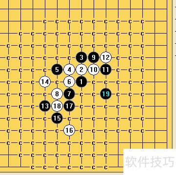 7、 因白棋在H5活三可与第16手相连,黑棋选择G6以掌控局面。黑17未选H5,因其仅能与15连接,连通性较弱。