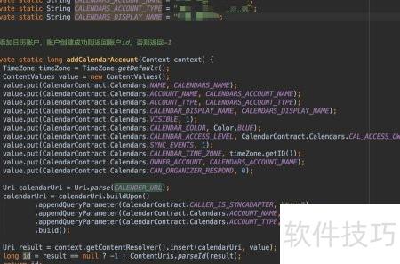 3、 检查日历账户是否存在,若存在则返回其ID,否则需新建账户并获取新生成的账户ID。