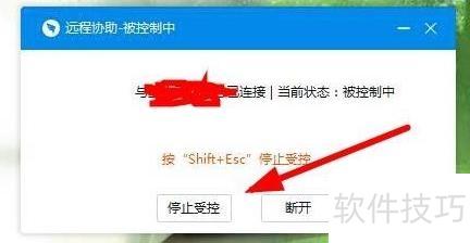 7、 在对话框中选择以终止本次远程协助连接。