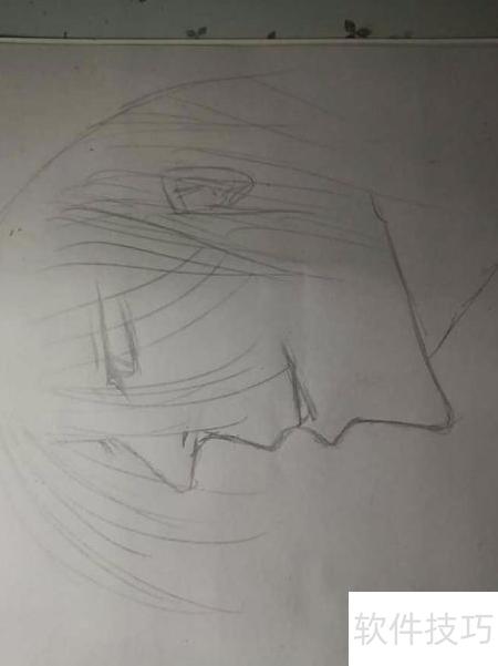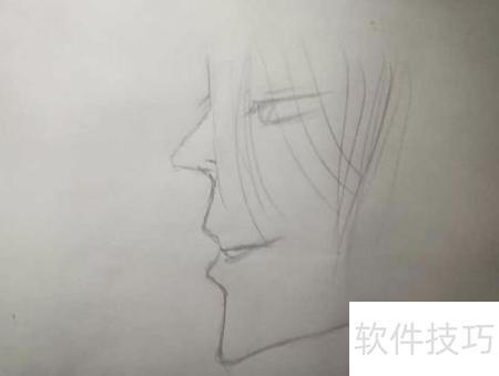 3、 先画眼睛两侧的头发,接着描绘右侧发丝,完成后顺带简略勾勒出耳朵轮廓,使整体造型更加协调自然。
