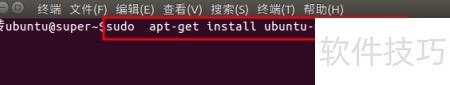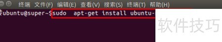5、 在终端输入 sudo apt-get install ubuntu-mate,按下 Tab 键可自动补全并查看可用的软件包名称。