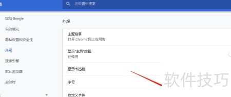 10、 进入设置中的外观页面,开启自定义字体功能。