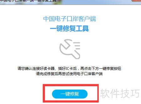 部分企业在淘宝购买海关IC卡读卡器后,可能出现插卡无法登录电子口岸的情况。遇到该问题时,应首先检查读卡器与IC卡是否连接稳固(新型号SReader01在正确插入IC卡后会亮起红灯),随后依照文中提供的步骤执行一键修复操作,即可恢复正常登录功能。