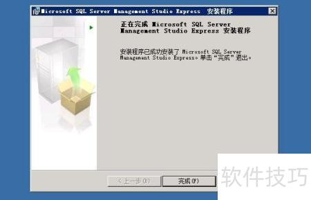 6、 安装程序复制文件数分钟后,会出现安装完成提示窗口,表明安装成功,此时即可使用SQL数据库的Express版本,具体界面所示。
