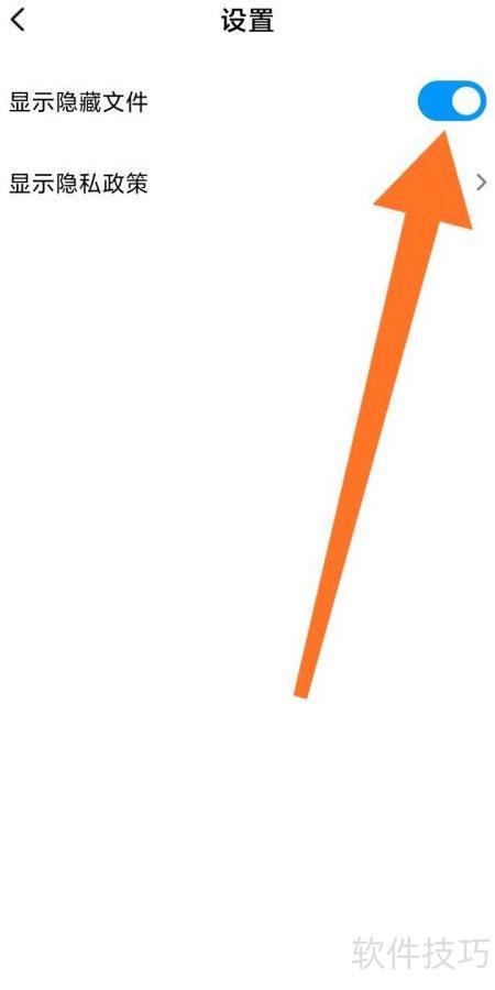 8、 检查显示隐藏文件右侧开关是否开启,若呈蓝色即为已启用状态。