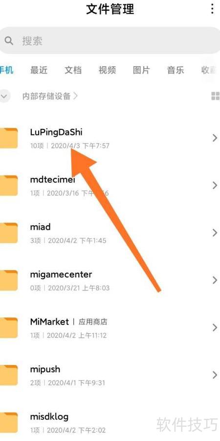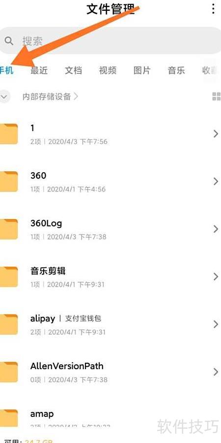 2、 打开文件管理器,进入手机目录查找所需文件。