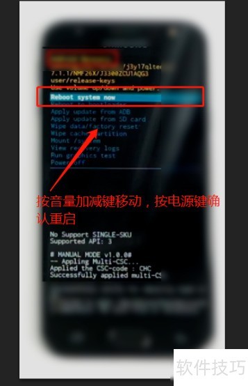 5、 最后返回主界面,通过音量键选择立即重启系统选项,该操作表示重新启动设备,按下电源键确认重启,整个双清流程即告完成。