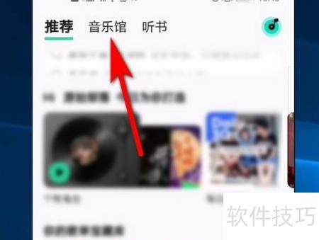 1、 打开QQ音乐后,点击顶部的音乐馆选项。