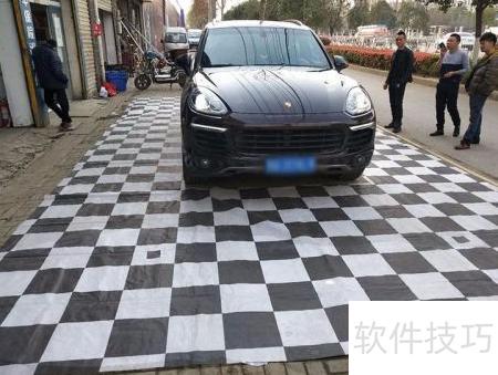 2、 安装好四路摄像头后,进入画面效果调试阶段。将棋格布铺设于车辆周围,即可进行标定校准。值得一提的是,这种仅需一块棋格布的标定方法为探长专利技术,业内称为一步定标法。