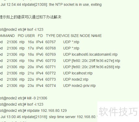 2、 由于ntpdate服务已运行,再次启动引发冲突所致。