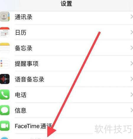 3、 进入设置,选择Safari浏览器选项。