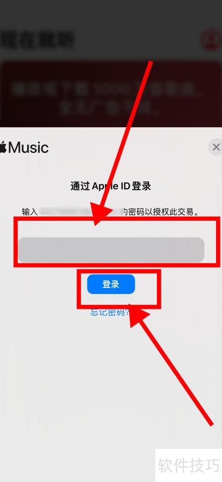 3、 输入密码后点击登录,即可免费领取一个月Apple Music会员。