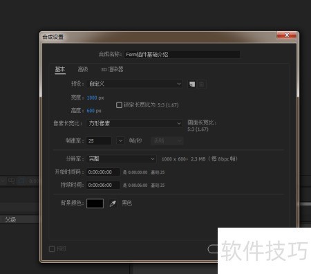 1、 启动AE,创建新项目并命名,加载Form插件,设置相关参数进行基础操作。