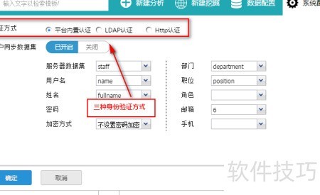 3、 登录FineBI系统后,进入系统配置中的用户管理页面,通过设置标签可选择身份验证方式,具体操作所示。