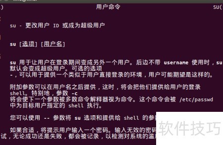 1、 若不清楚su命令的用法,可用man命令查看其帮助文档。