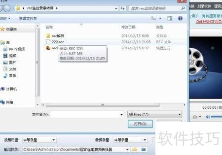 5、 查找并打开rec监控录像文件