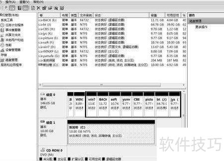 8、 重启后,在多重启动菜单中选择Windows 7即可进入克隆系统。随后打开磁盘管理,此时系统分区C盘显示为磁盘1,即对应已加载的VHD文件中的克隆系统,3所示。