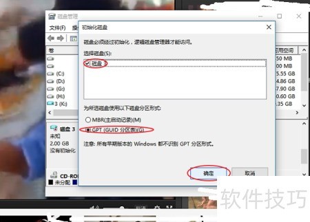 7、 初始化新建的VHD磁盘,并根据系统引导模式选择对应的磁盘引导方式。