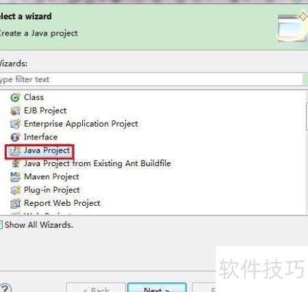 2、 在弹出的选择向导窗口中,双击选中Java项目即可。