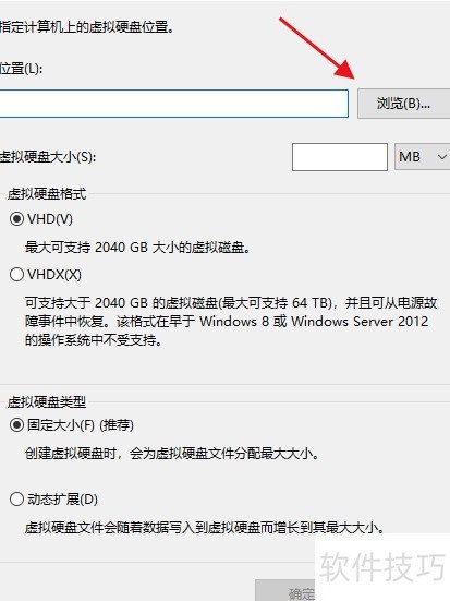 5、 浏览虚拟硬盘在物理硬盘上的分区存储位置。