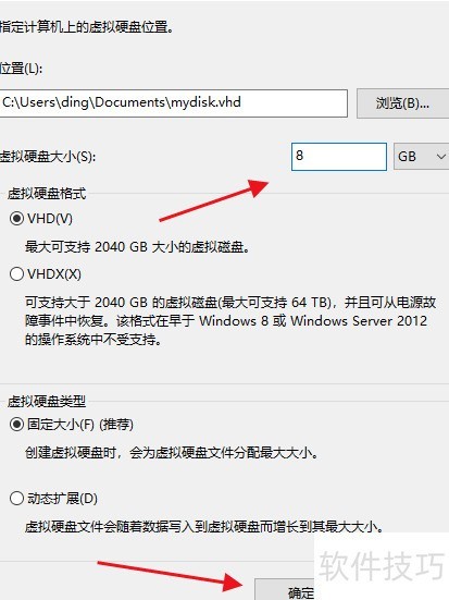 7、 设定虚拟硬盘容量后确认,即可完成创建。