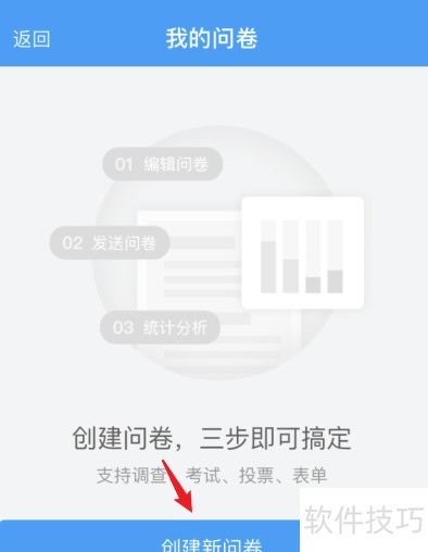 1、 打开问卷星,选择新建问卷即可开始创建。